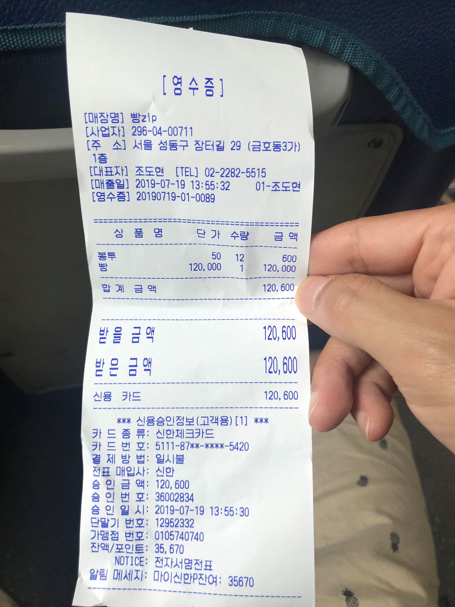 (영수증을 공개)