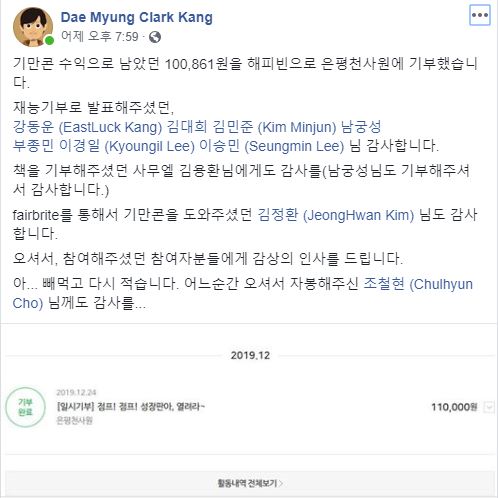 남은 비용은 기부하게 되었다.