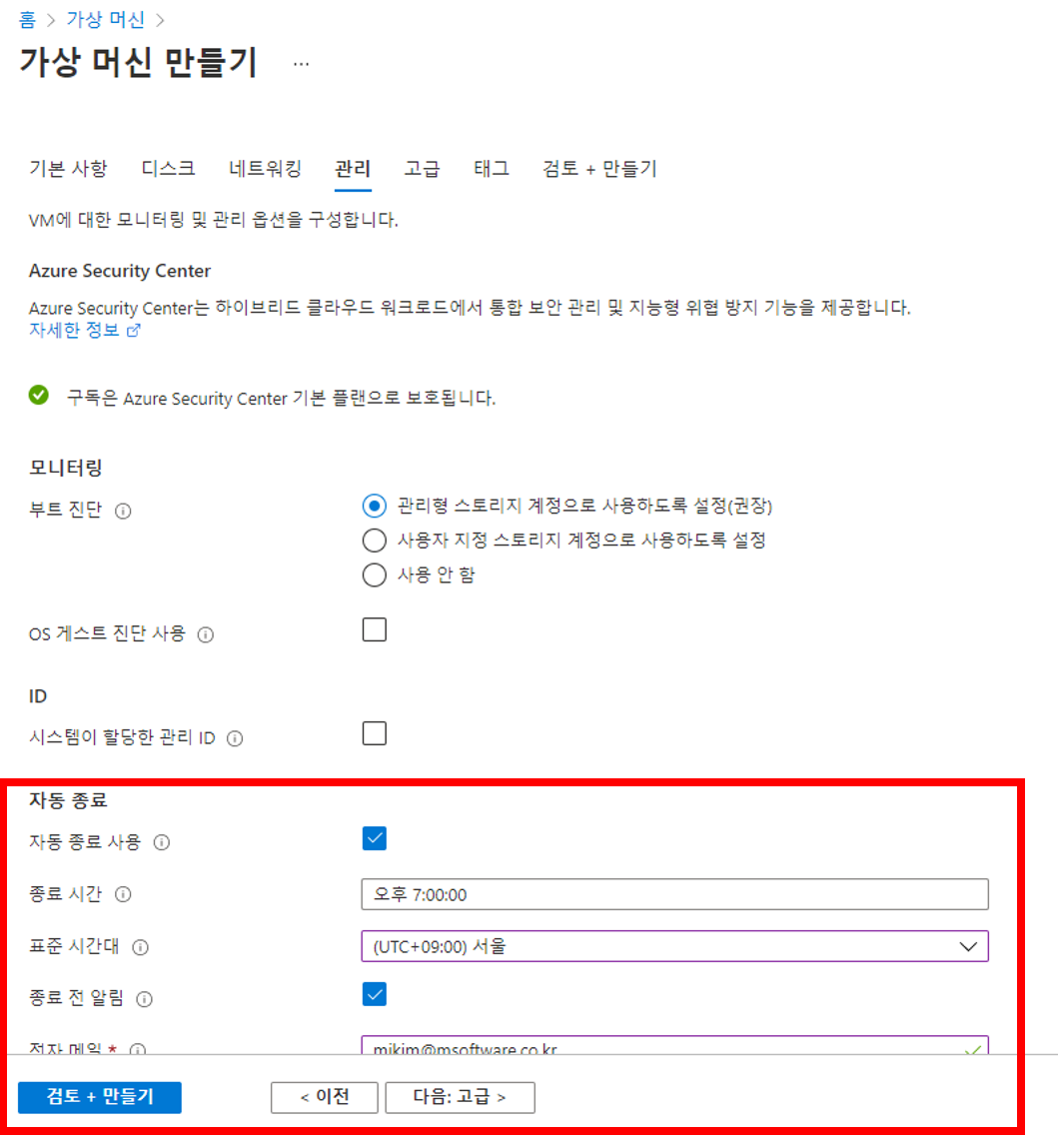 관리탭까지 진행하면 '자동 종료'를 설정할 수 있습니다.