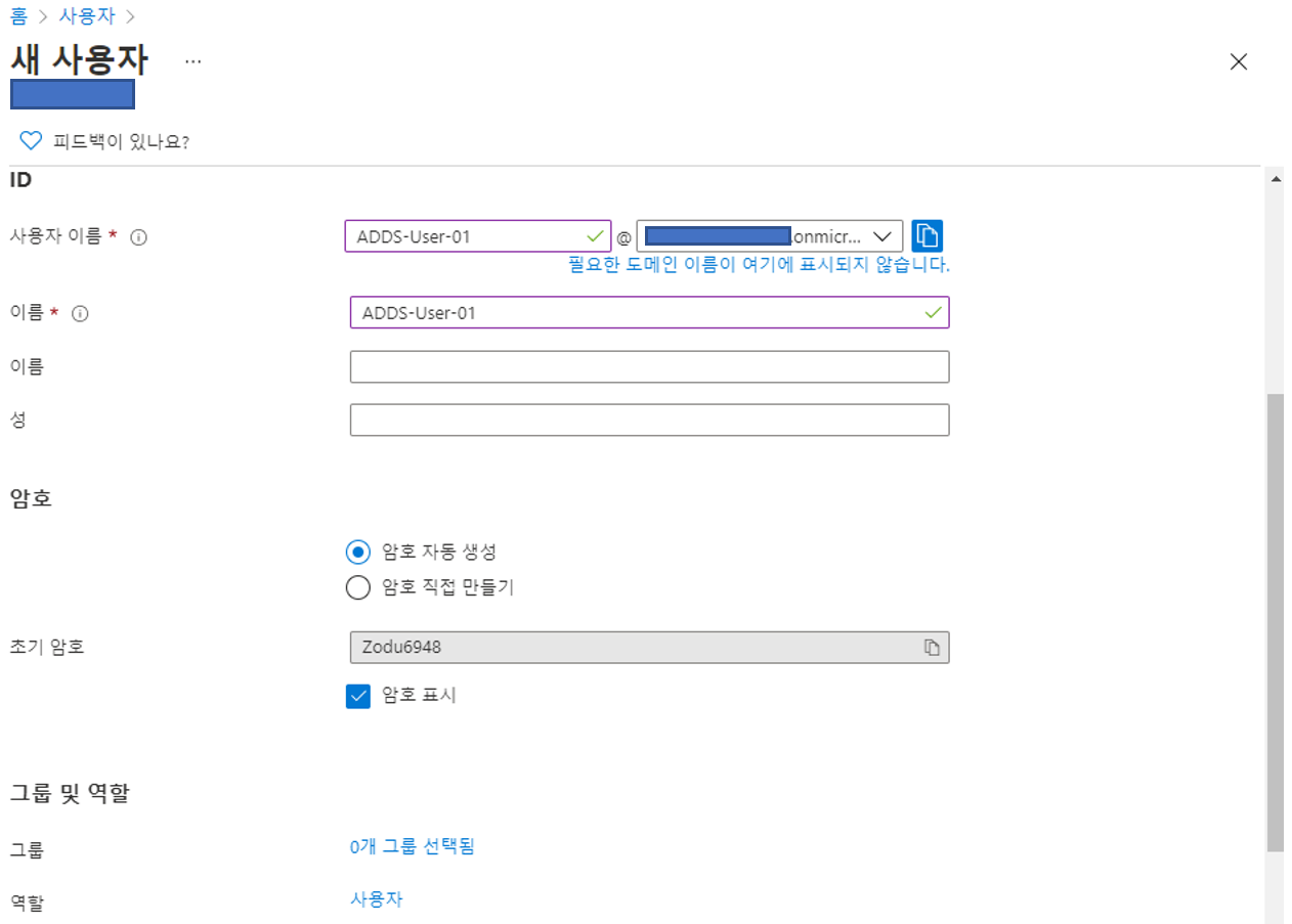 계정을 확인했으면 다시 관리자 계정으로 접근하여 Azure AD Domain Services로 이동합니다.