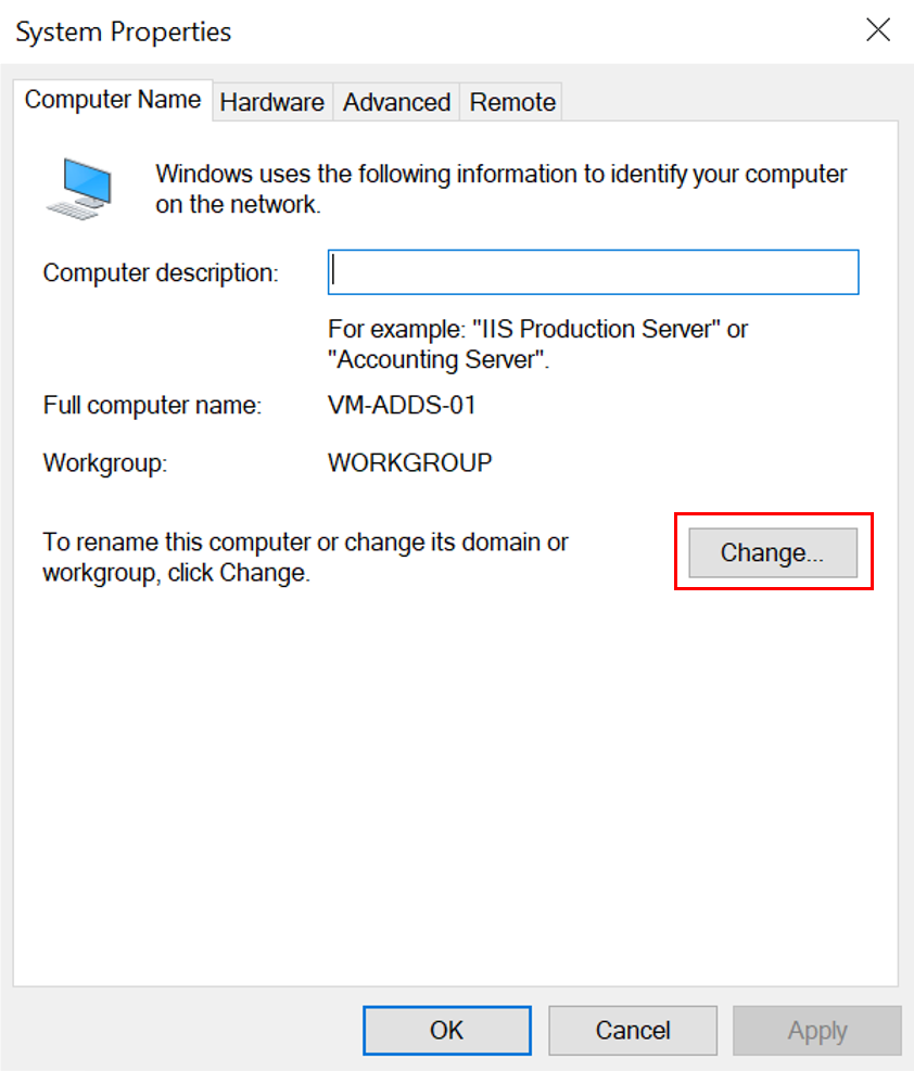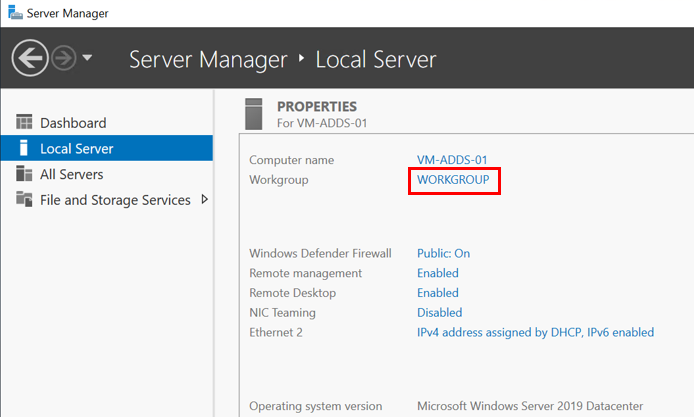 서버 매니저에서 Local Server를 클릭하면 Properties에 Workgroup이 존재하는 것을 확인할 수 있습니다.