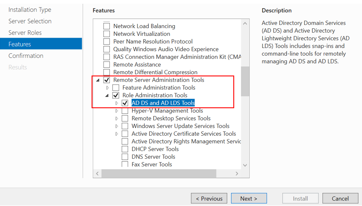 Remote Server Administration Tools > Role Administration Tools > AD DS And AD LDS Tools를 설치합니다.