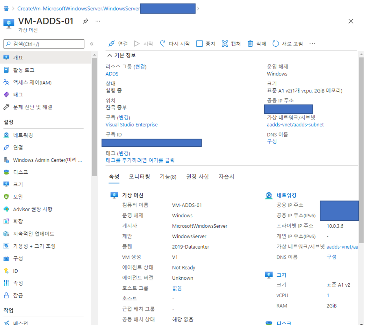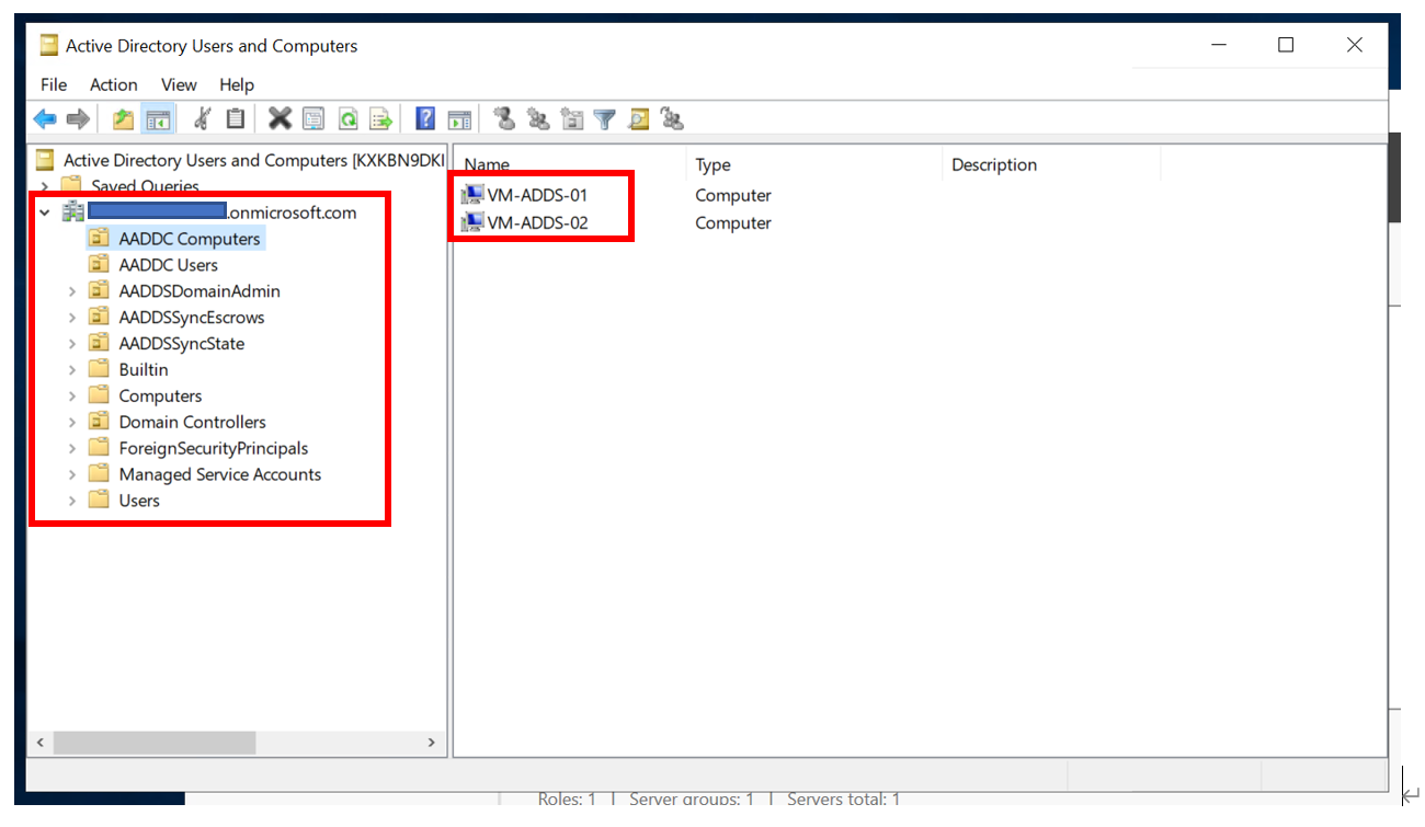 AADDC Computers 를 클릭해보면 VM 2개가 정상적으로 확인됩니다.