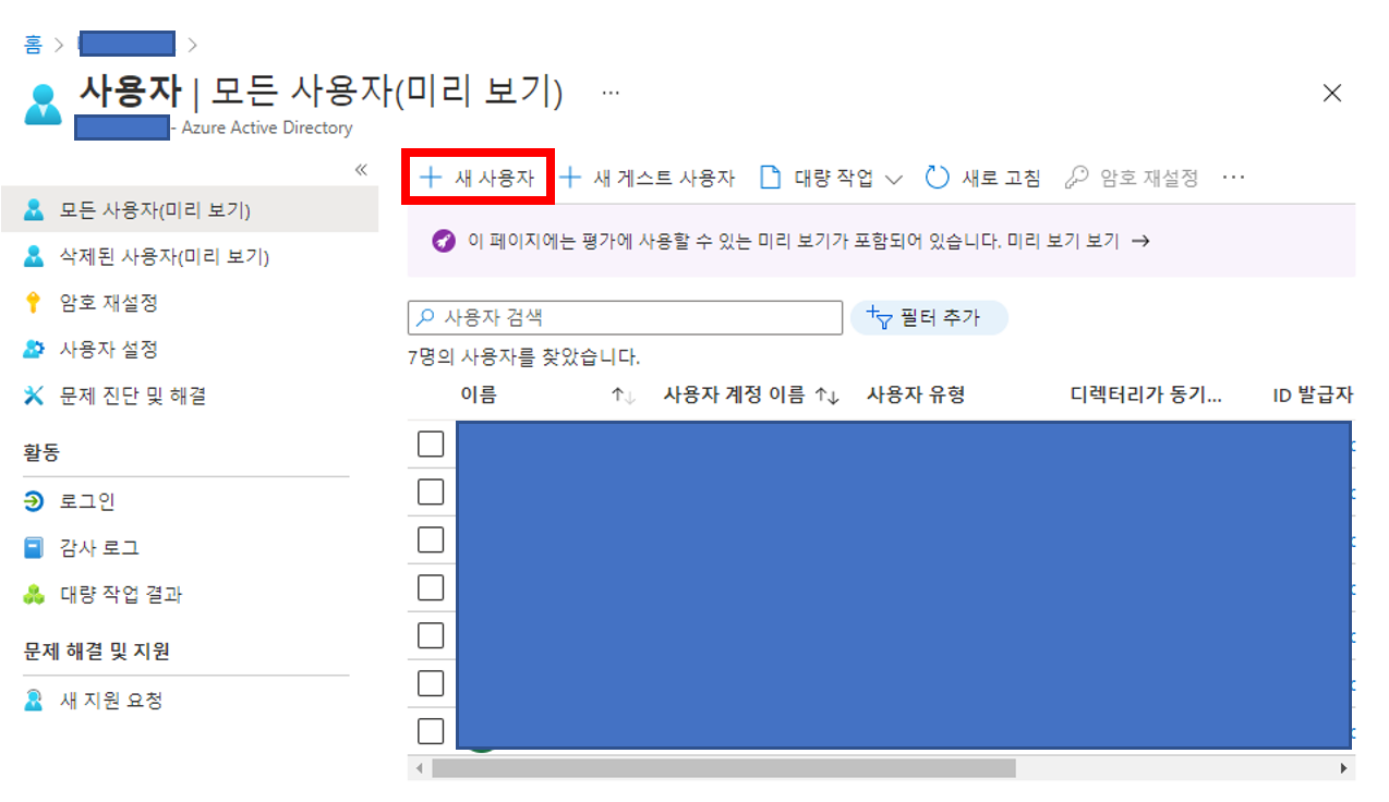 동일하게 02 유져 정보를 Azure Portal에서 신규 생성해봅니다.