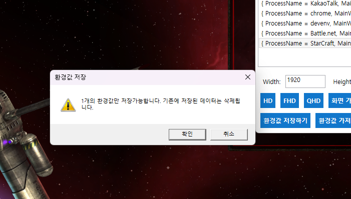 그런데 이게 매번 창모드를 하면 초기화가 되어 많이 불편하여 이 프로그램을 만들었다.