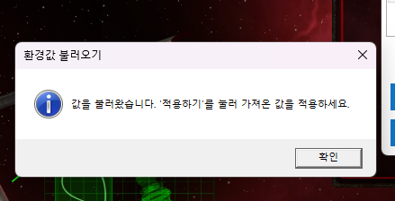 가져온 값을 적용하기 버튼 누르면 적용된다.