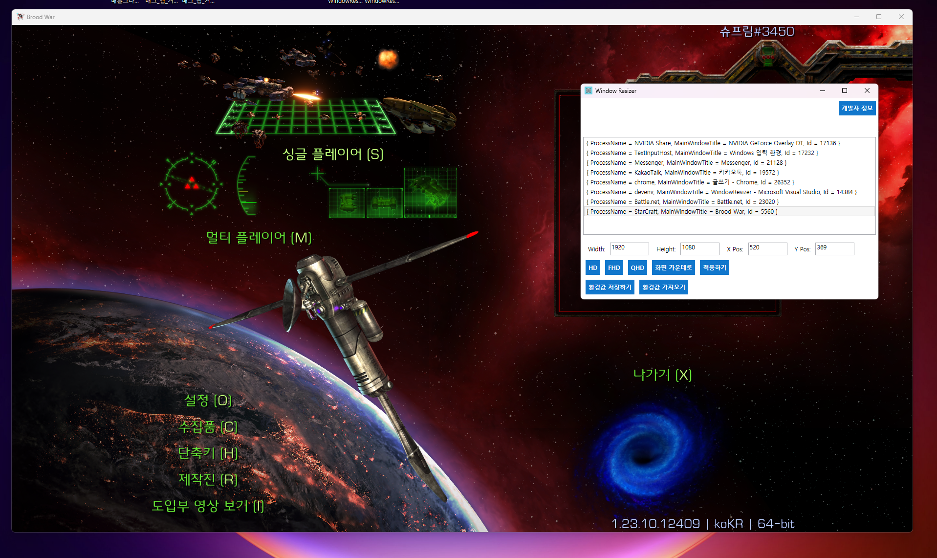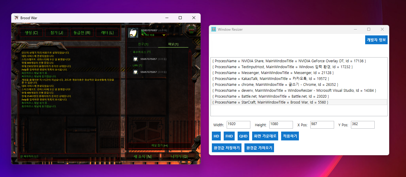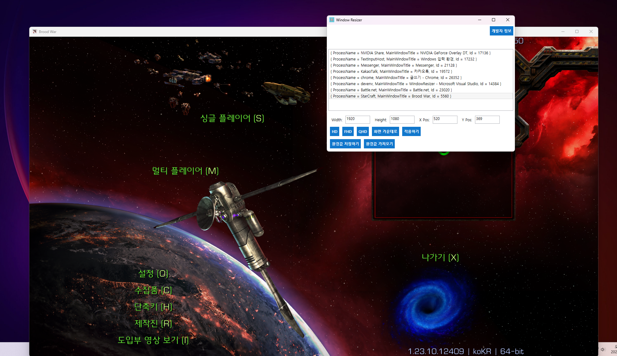 내가 개발한 이 프로그램으로 스타크래프트 창 크기를 자유롭게 조정할 수 있다.