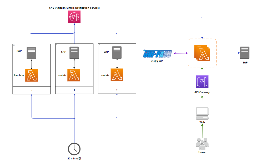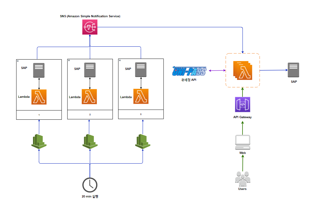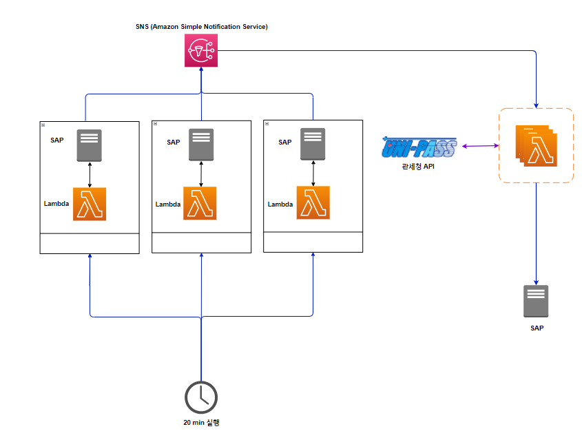 3) 두번째 Lambda에서는 관세청 API를 호출하고 처리결과는 곧 바로 SAP로 I/F(인터페이스)해준다.
