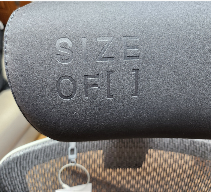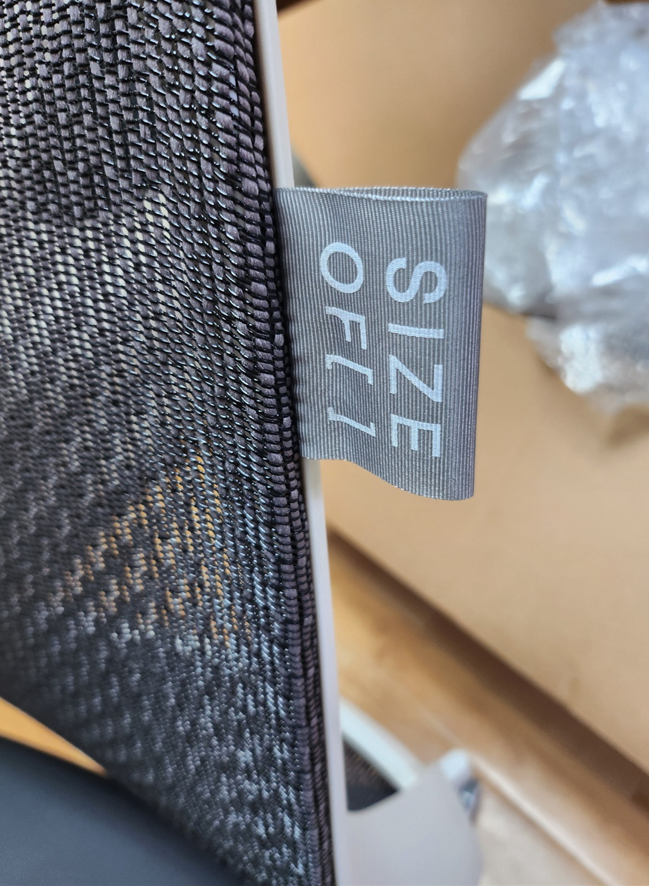 원래 사용하던 의자는 좌판 우측에 사이즈오브라고 라벨이 붙어 있다.