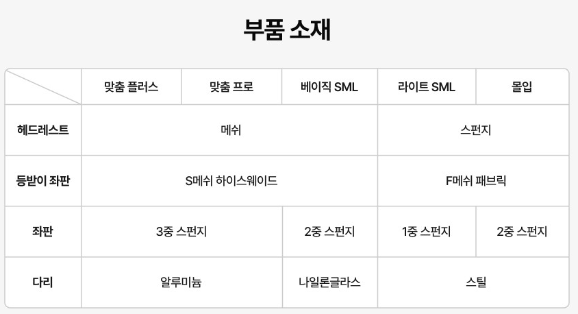 내가 사용하던 의자는 과거에 판매하던 제품이고 현재는 판매하지 않는데 굳이 비교하자면 '맞춤 프로'라고 한다.