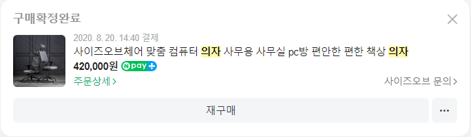 기존에 사용하던 의자는 2020년 8월에 구매한 '사이즈오브체어'이다.