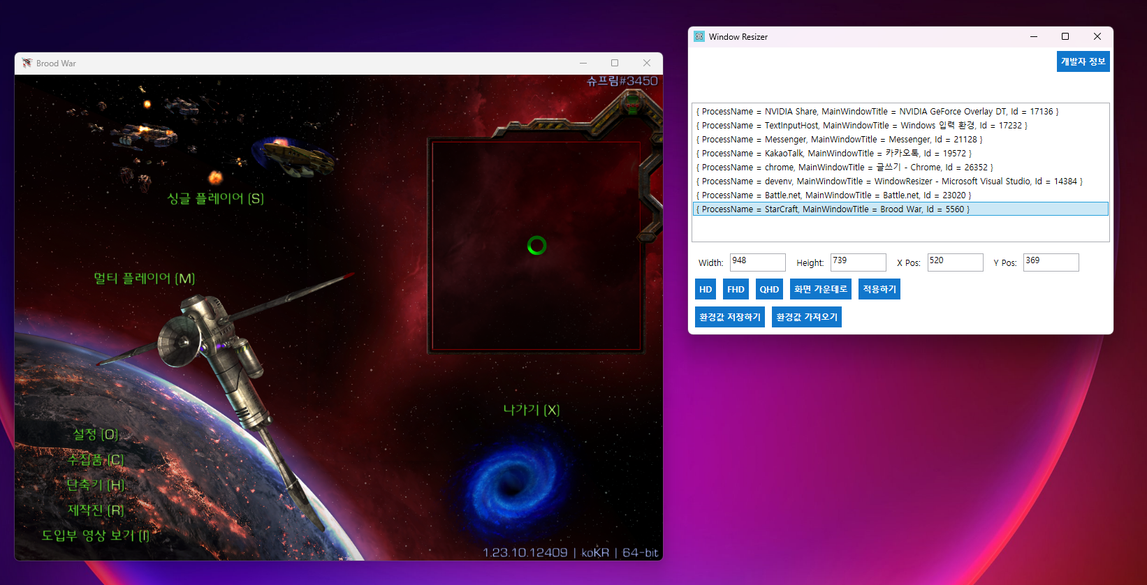 내가 개발한 이 프로그램으로 스타크래프트 창 크기를 자유롭게 조정할 수 있다.