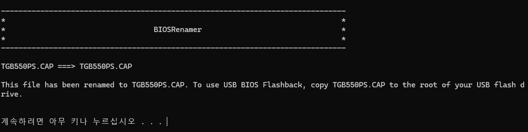 - 다운로드한 파일을 USB로 옮기는데 파일명을 변경해서 옮긴다. CAP파일의 파일명을 TGB550PS.CAP로 변경한다.