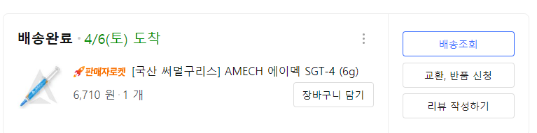 써멀구리스는 AMECH 에이멕 SGT-4 (6g) 제품을 사용했다.