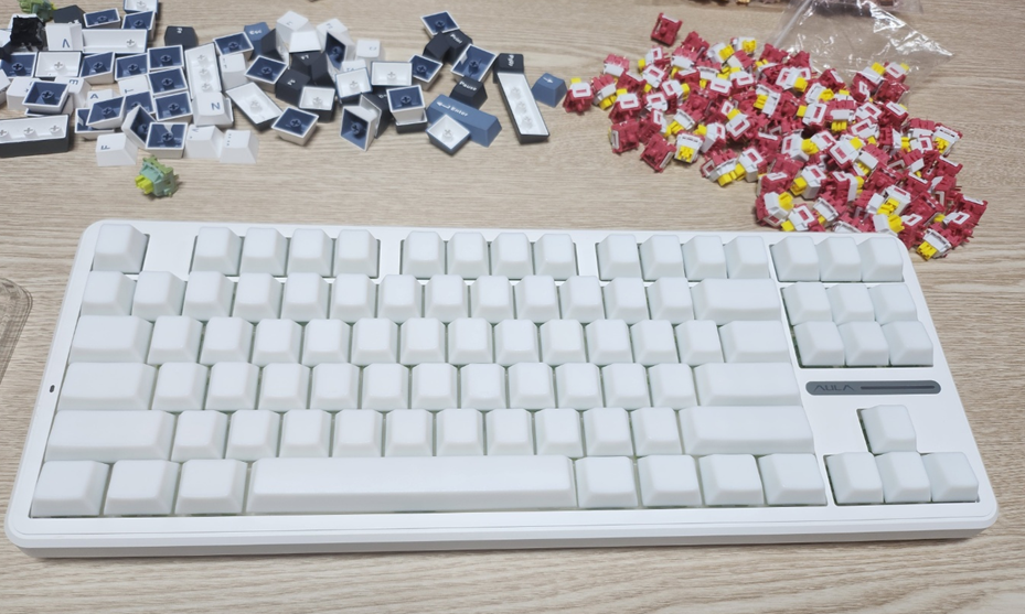 여기서 이제 드디어 사오파오에서 구매한 엔승 무각 키캡을 끼웠다.
