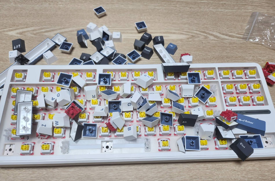 독거미 키보드의 키캡과 스위치를 마구마구 뽑았다.