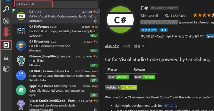 2. 확장 프로그램 설치 - C# for Visual Studio Code