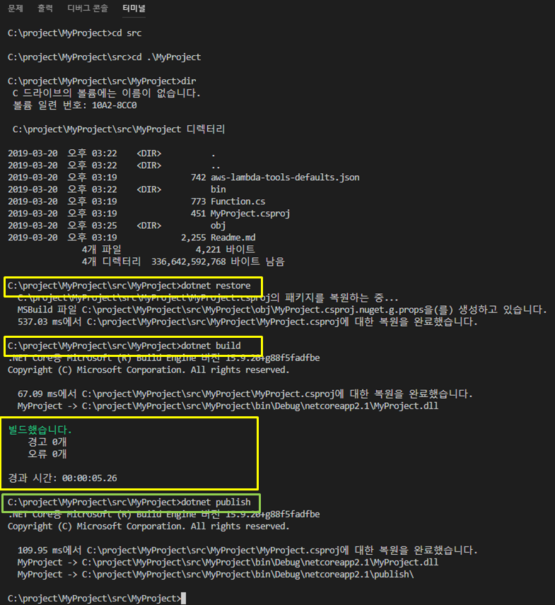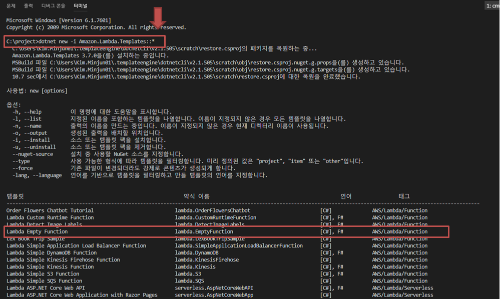 → dotnet new lambda.EmptyFunction --name MyProject --profile default --region seoul