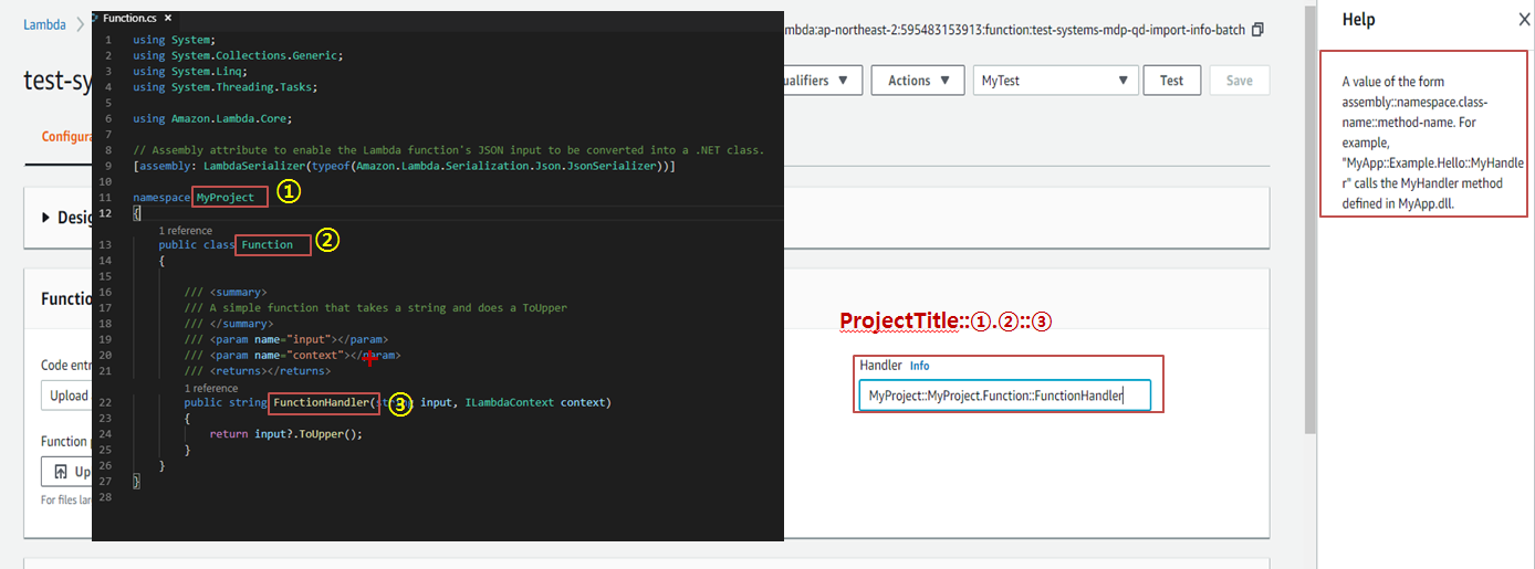 11. 람다에 접속하여 Handler 명칭을 생성한 프로젝트에 맞게 수정 한다.