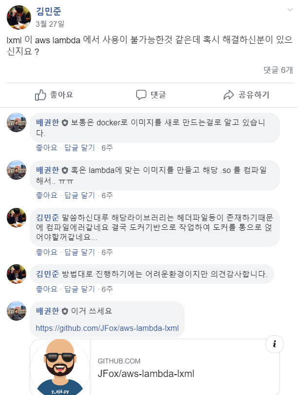 동시에 파이썬 코리아 그룹에서도 알려주시는 고마운분이 있었다.